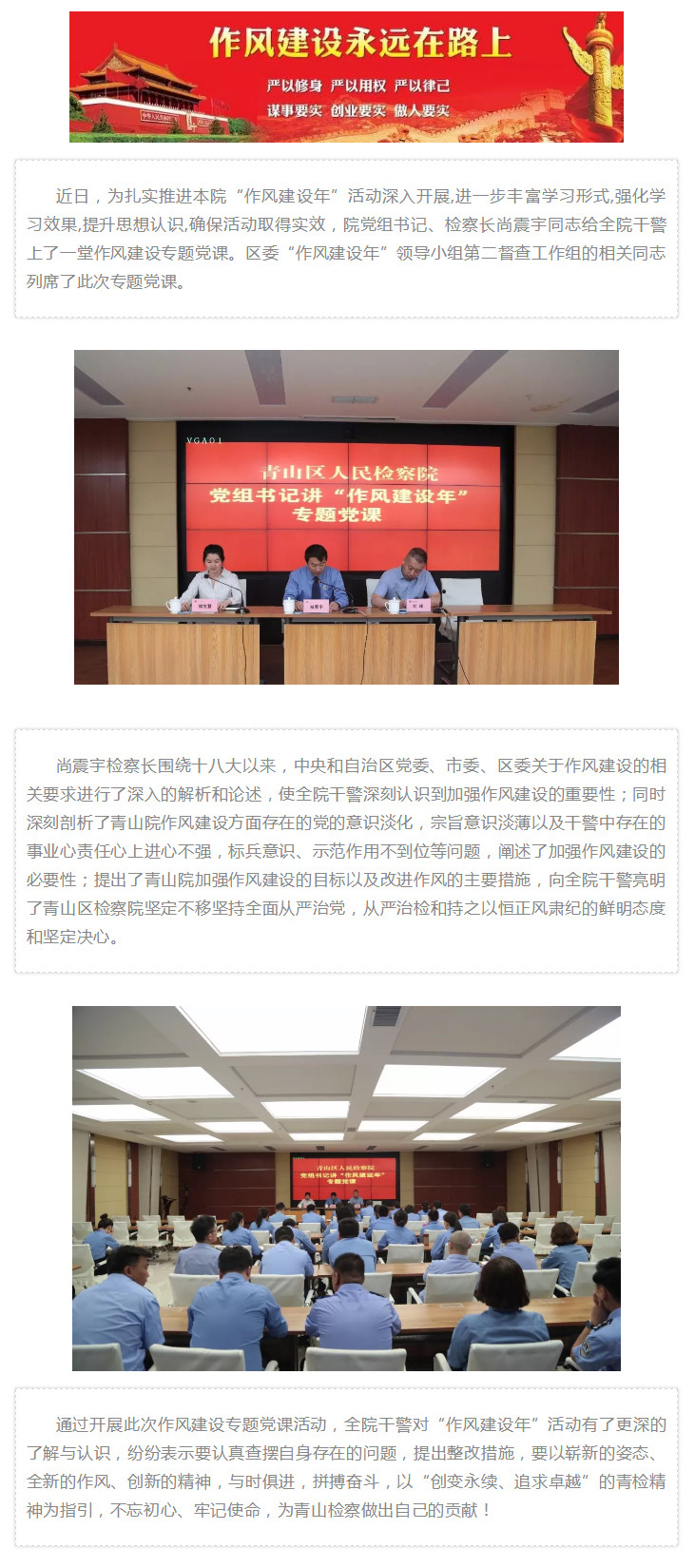 青山区人民检察院党组书记讲“作风建设年"专题党课