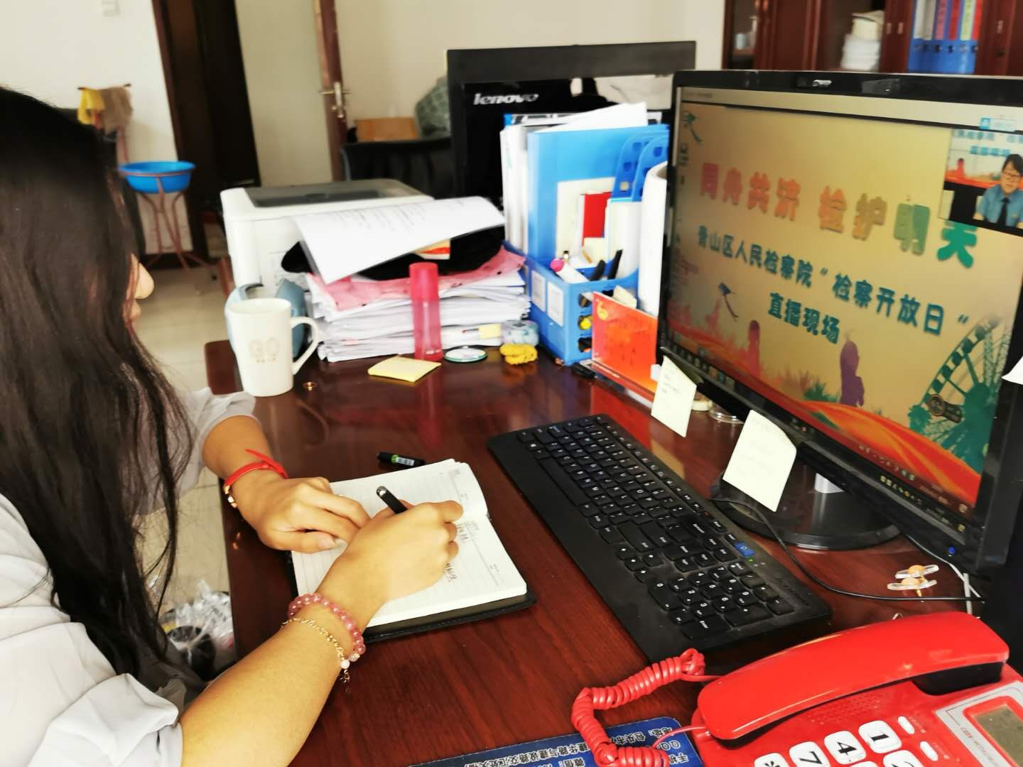 2020年的“六一”儿童节,青山区人民检察院举办了以“同舟共济,检护明天”为主题的网上检察开放日活动。这是青山区检察院首次在网上举办检察开放日直播活动,采取全程网络直播的方式进行。活动开展之前,青山区检察院通过“两微一端”向社会各界广泛发出邀请函,邀请人大代表、政协委员、人民监督员、教育部门、共青团、关工委以及广大师生、社会各界关心未成年人成长的相关人士,走进直播间,参与线上交流互动。
