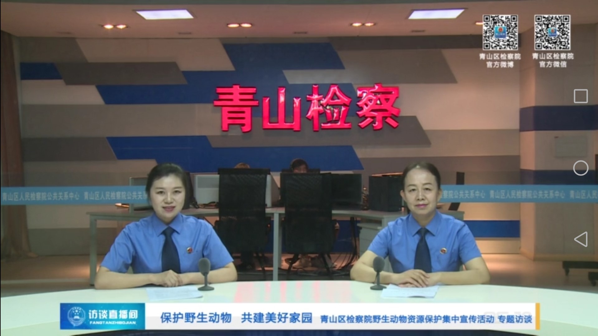 近日,青山区检察院按照包头市人民检察院《关于开展野生动物资源保护集中宣传活动方案》要求,开展了野生动物保护集中宣传活动,就此,青山区检察院第五检察部主任王艳伟来到公共关系中心接受访谈,通过本院微信公众号向大家介绍了本次活动情况,并解答野生动物保护相关问题。